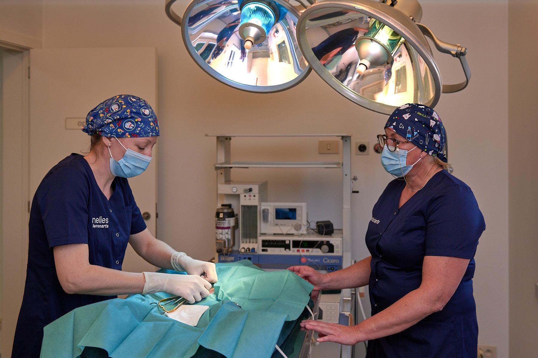 Annelies beschikt over een steriele operatiekamer met moderne gasanesthesie en bewakingsapparatuur. Alles op-en-top in orde voor een veilige narcose bij zowel preventieve operaties, zoals castratie en sterilisatie, als voor dringende operaties. Naast interne geneeskunde kijkt ze ook naar dermatologische problemen.